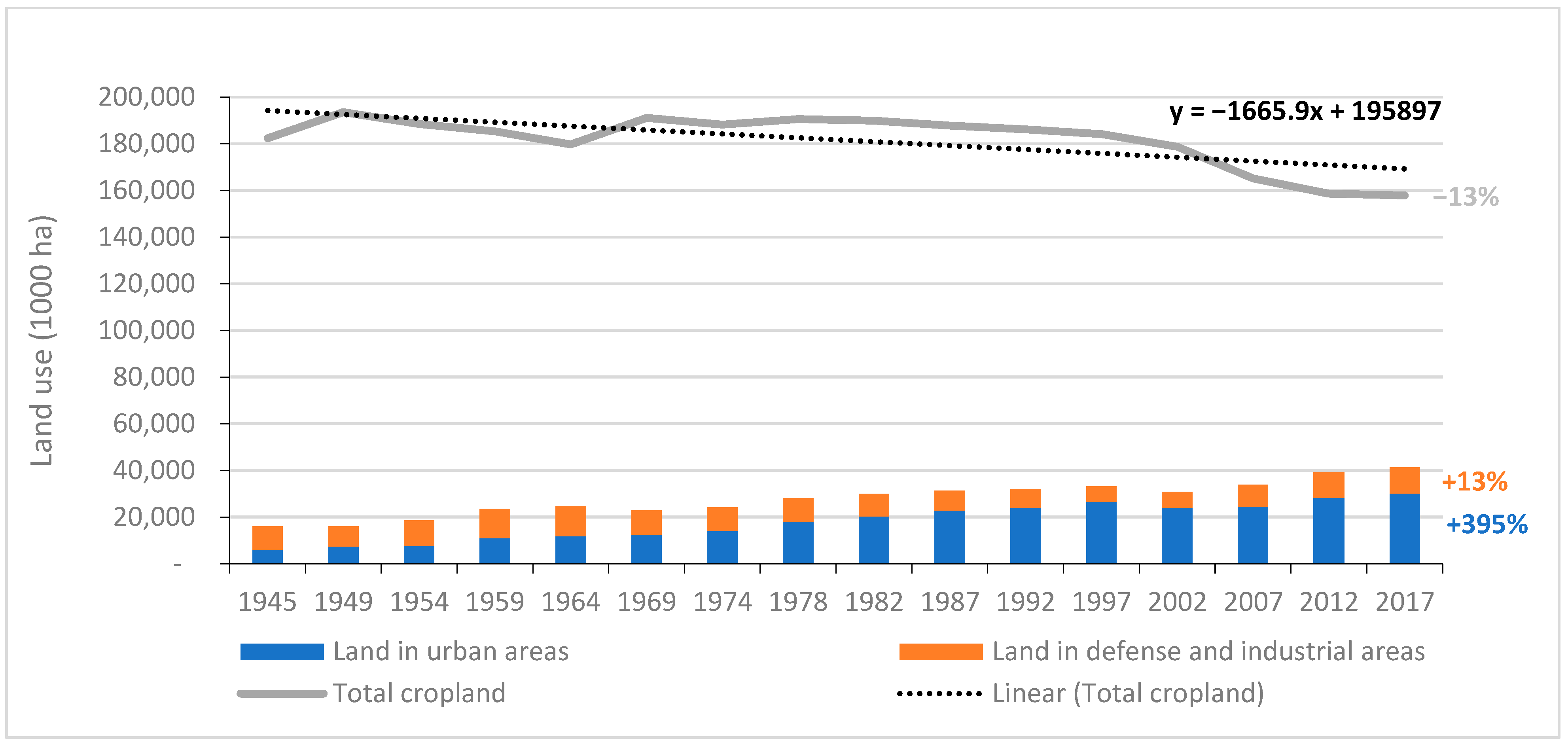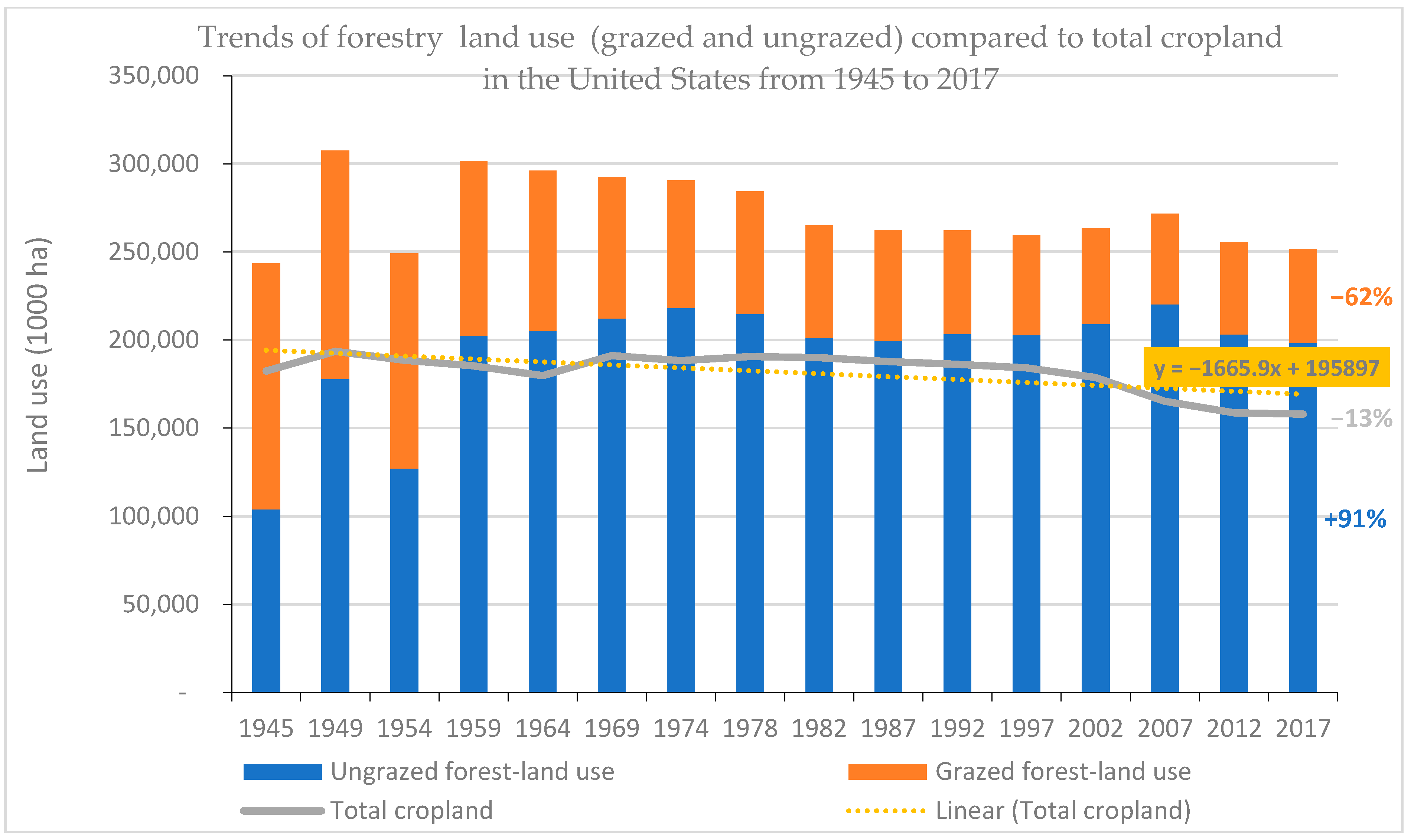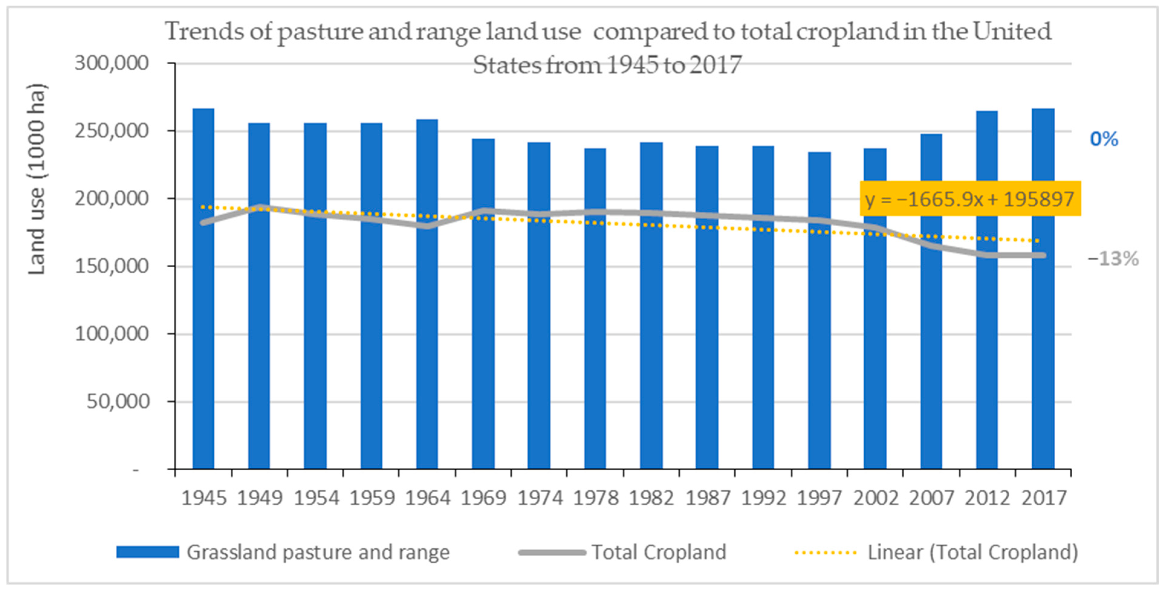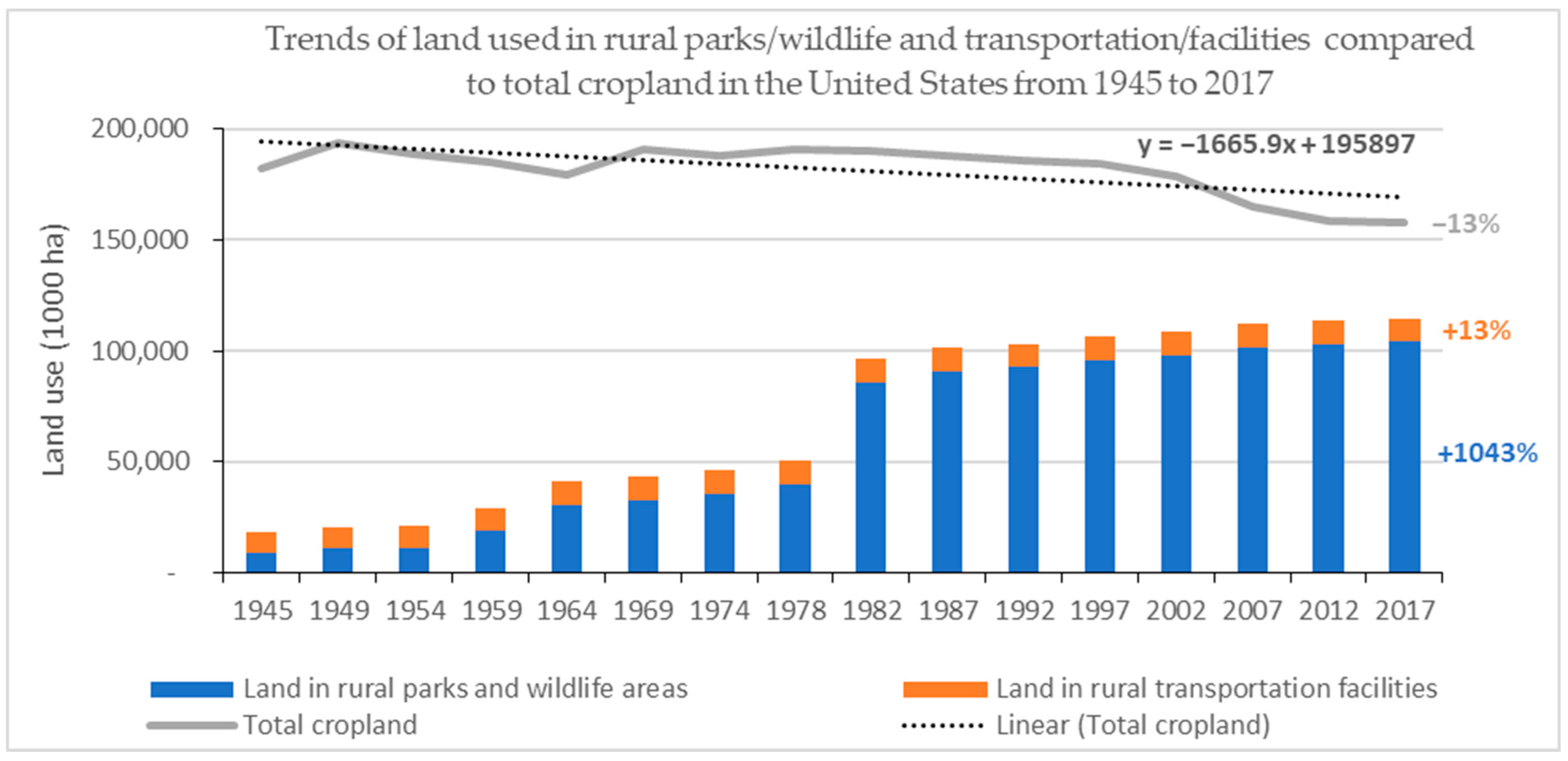 Cropland, Competing Land Use, and Food Security Implications: Seven-Decade Case Analysis of USA
