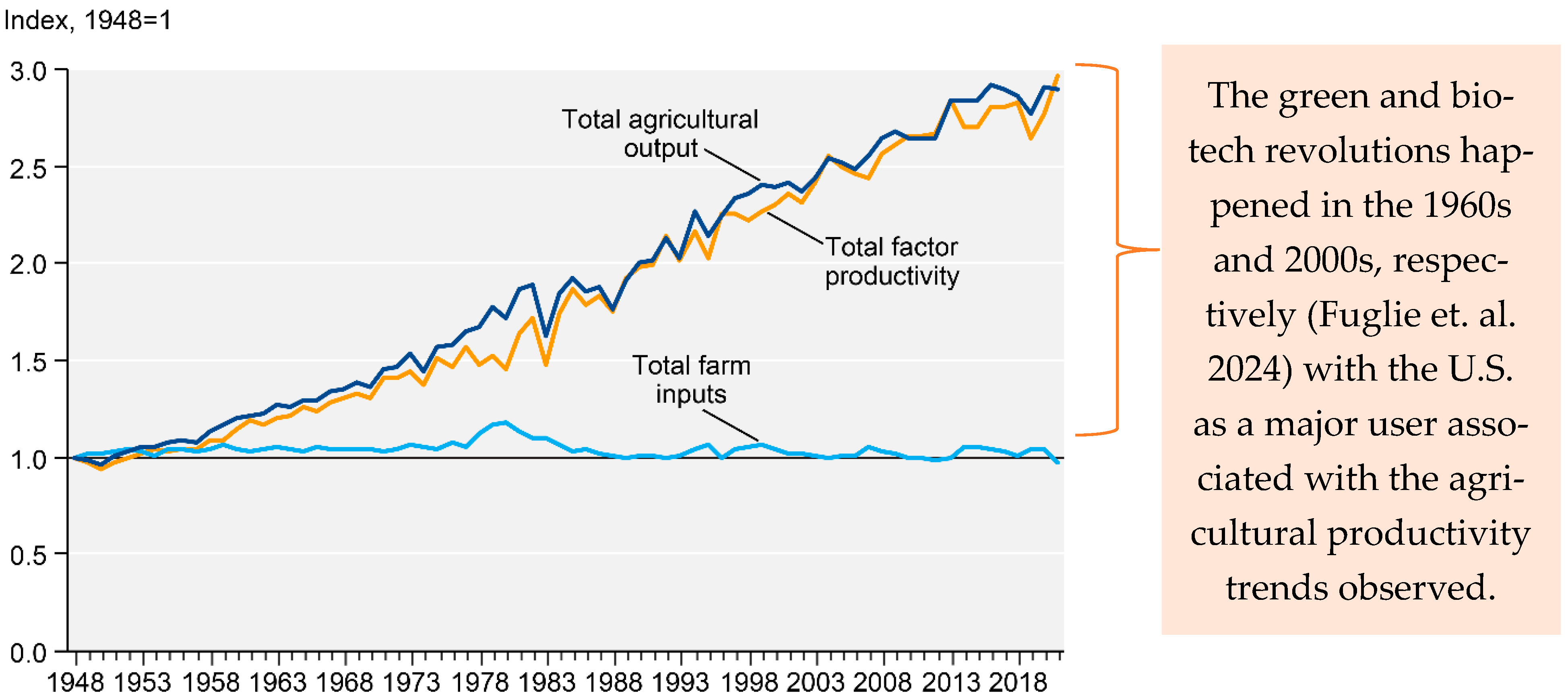 - USDA, Economic Research Services. Agricultural Productivity in the United States. 2024. Available online: https://www.ers.usda.gov/data-products/agricultural-productivity-in-the-united-states/summary-of-recent-findings (accessed on 22 March 2025).