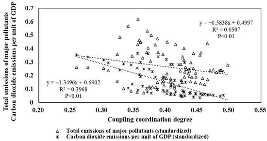 Finally, statistical regression analysis was used to analyze the relationship of emission reduction and resource-saving indicators with D, which revealed the internal laws regulating coordinated development.