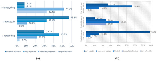 Zaabi & Pech [49] highlight the challenges of balancing diverse stakeholder interests in the Abu Dhabi shipbuilding sector, where strategic differences could hinder effective execution. In Turkey, stakeholders suggest that green supply chain approaches increase shipyard sustainability in economic, social, and environmental aspects [50]. Utilising the country’s robust environmental and labour standards, Brazilian stakeholders in Latin America see an opportunity to convert idle shipyard capacity into ship recycling facilities. Still, they consider shortcomings in technical knowledge as a barrier to guaranteeing and sustaining execution [51].