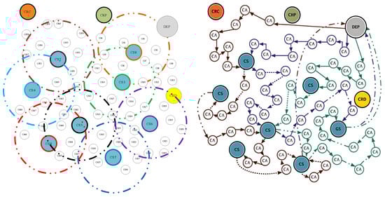 In Equation (5), the total distance travelled is the sum of all segments travelled by the vehicles, including the last collection centre tour or, if the vehicle is for the last specialized centre, towards the depot . Depot is the place from where the vehicles depart every day to meet the demand for waste and is the place where they return after having covered all the points assigned to their route. The variable represents the journey of vehicle for all collection centres assigned to its route. The variable represents the journey undertaken by the vehicle to the selection centres assigned to its route. The variable represents the journey of vehicle of the last selection centre to the corresponding specialized centre. The variable represents the index of the specialized centres. The variable represents the set of specialized centres. The variable represents the last selection centre visited. The variable represents the journey of the last centre to the depot.