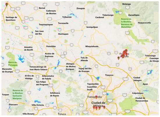 The (Table 3) instance includes a recycling company (REMSA), which is located in Querétaro City, and mobile phone stores that receive cellphones that are no longer used. Most of the stores are located in Pachuca, Hidalgo, and Mexico City (see Figure 2).