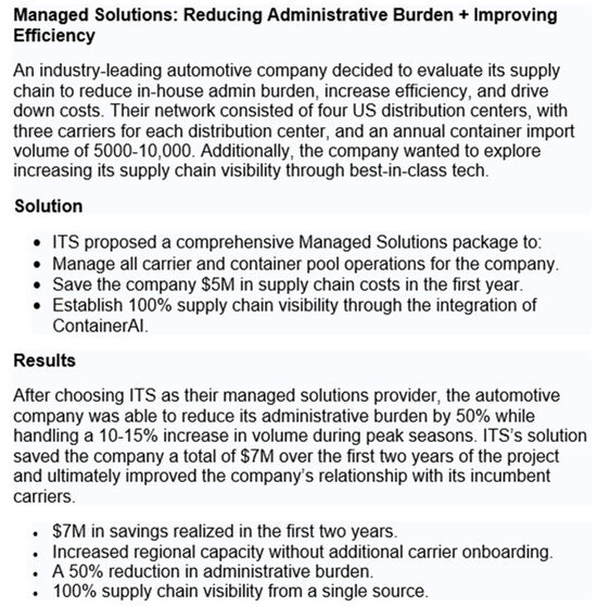 - How would you describe ITS Logistics to someone who has never heard of it?