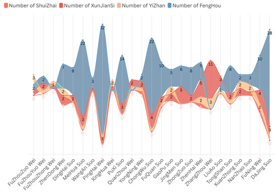 The system displayed remarkable integration: Wei-Suo, military inspection stations (Xunjiansi), and Ming Dynasty Relay Posts (Yizhan) achieved spatial coordination through functional synergy (Figure 9). This synergy enhanced resource allocation and optimized deployments, thus improving overall effectiveness. As core components of the network, Wei citadels must be evaluated based on their joint response speed and accuracy, logistics efficiency, and their strategic role within the broader maritime defence system.