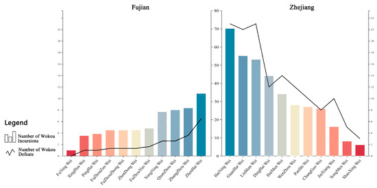 - Liu, H.J.; Wang, Y.G.; Tan, L.F.; Zhang, R.; Zhang, F. Analysis of the spatial evolution of coastal defence patterns in Ming Dynasty based on long-time-series Wokou invasions (Zhejiang). Herit. Sci. 2024, 12, 263. [Google Scholar] [CrossRef]