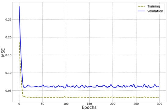 The obtained results demonstrate the overall stability of the model’s performance. This is confirmed by the relatively close MSE values observed in both datasets. Nevertheless, several isolated cases of significant error increase were detected, which led to the maximum MSE values of 0.185 for the training dataset and 0.286 for the validation dataset. These instances indicate the presence of forecasts with considerable deviations from the actual values. At the same time, the minimum MSE values—0.031 for the training dataset and 0.062 for the validation dataset—confirm the high prediction accuracy of the model in the majority of experimental cases.