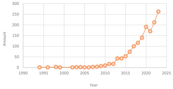 Number of preliminary research studies in the Scopus database from 1994 to early 2024.