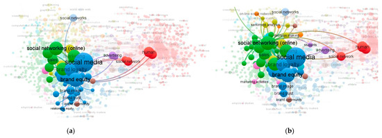 Keyword network analysis (1994–early 2024): (a) brand equity, (b) social networks.