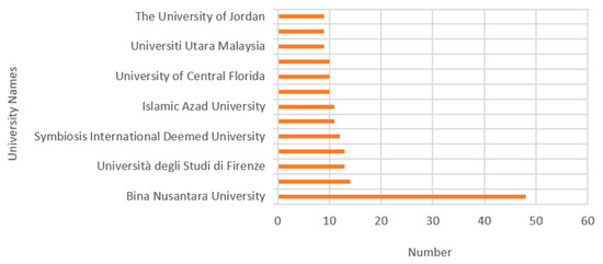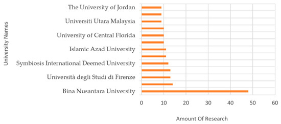 The growing developments in digital marketing and the prominent role of social media in enhancing market and brand equity underscore the importance of conducting research in this field. According to Figure 6, Islamic Azad University in Iran has gained a prominent position in conducting research derived from the Scopus database by organizing seminars and conferences and carrying out various and diverse studies in these areas. Based on Scopus data, among the twelve top universities in Iran with the highest publications in digital marketing and social media, Islamic Azad University holds the seventh position as a research center in this field. This data indicates that Islamic Azad University in Iran is actively engaged in generating knowledge and conducting research related to digital marketing and social media.