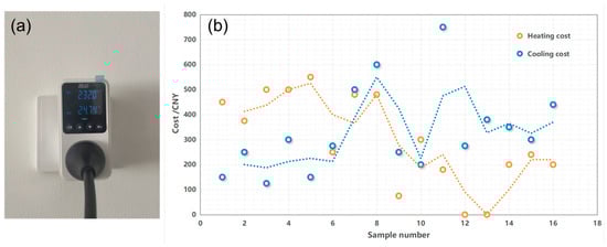 Heating/cooling electricity usage statistics: (a) metering socket and questionnaire, (b) cooling and heating expense statistics.