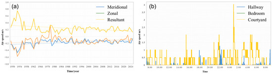 Analysis of indoor and outdoor air velocity in Guanzhong area: (a) ground air velocity (m/s), (b) measurement of indoor air velocity (m/s).