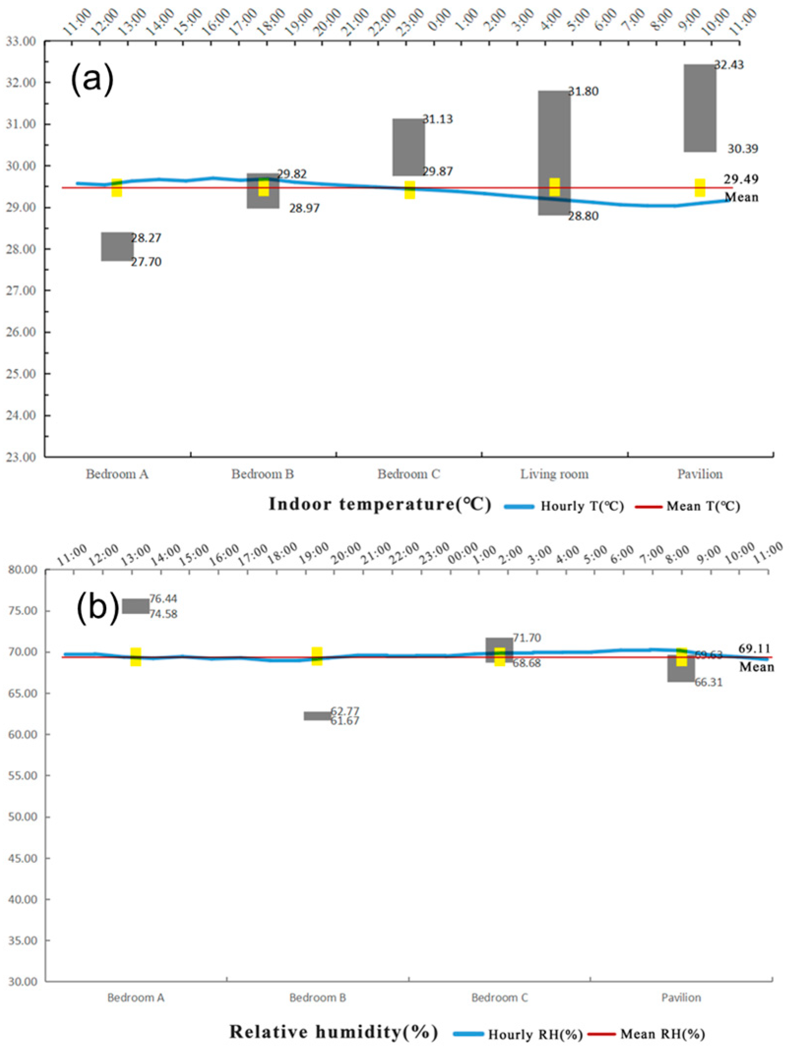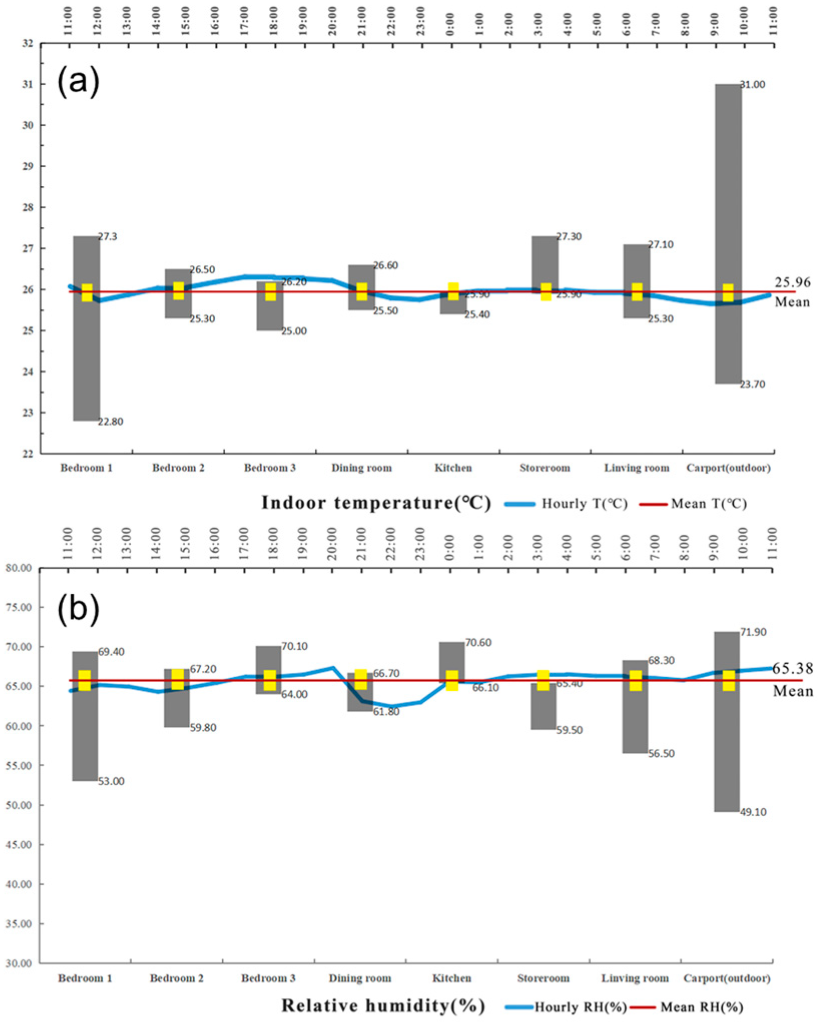 To reduce interference from human behavior and ensure comparability of results, doors and windows were kept closed during the monitoring period. Thermal Sensation Votes (TSVs) were not collected [