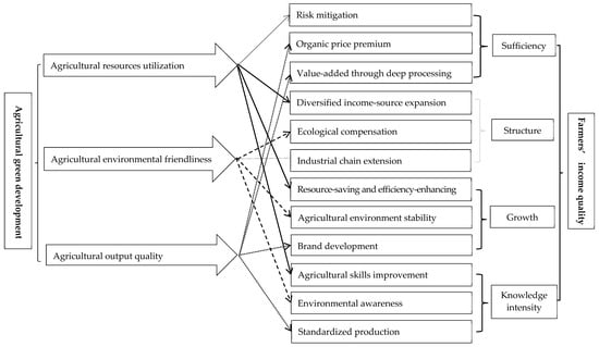 Mechanism of agricultural green development impacting farmers’ income quality.