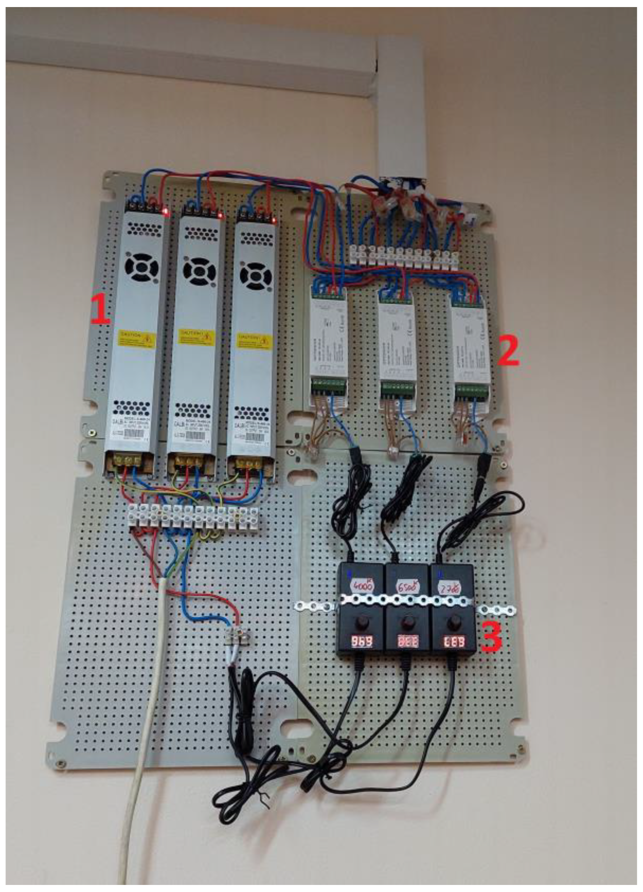 45] implemented an adjustable artificial lighting system based on dimmable LEDs (five channels: RGBWW), which allows for the simultaneous adjustment of CCT and CAF and is also energy efficient.