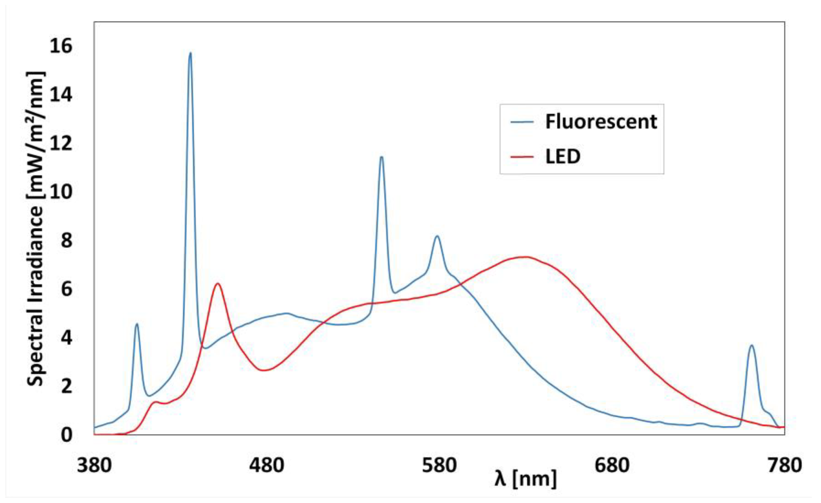 Globally, our research seems to suggest that, although fluorescent lighting had higher melanopic values (