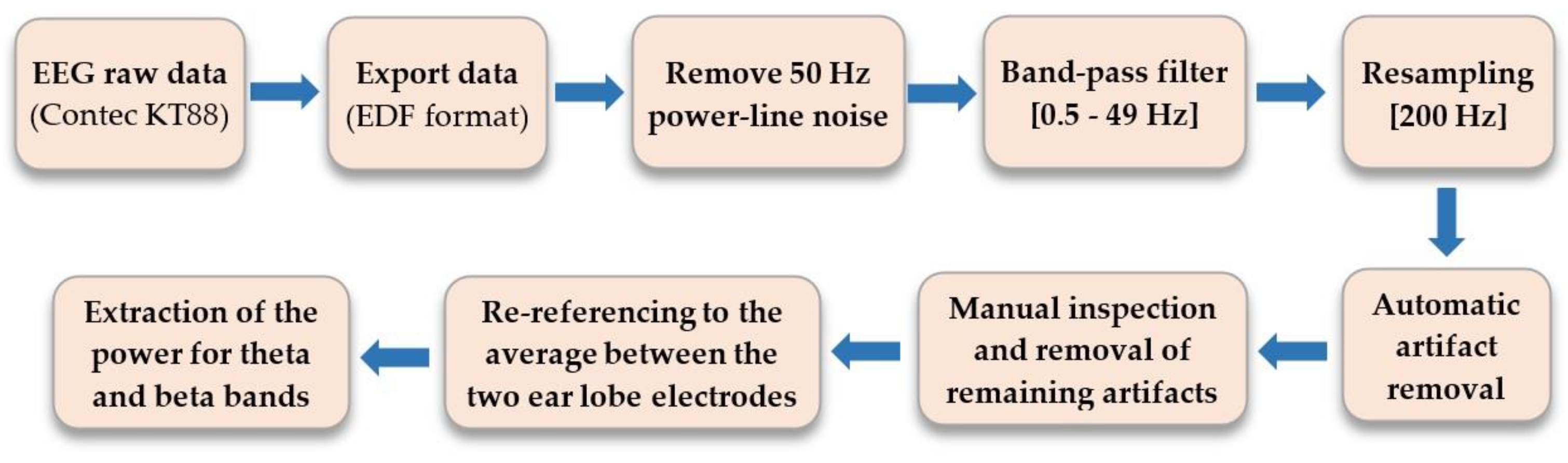 61]—establishment of comfortable indoor lighting conditions. In our research, the EEG analysis was utilized in order to assess the concentration and fatigue level of participants under the two lighting conditions.