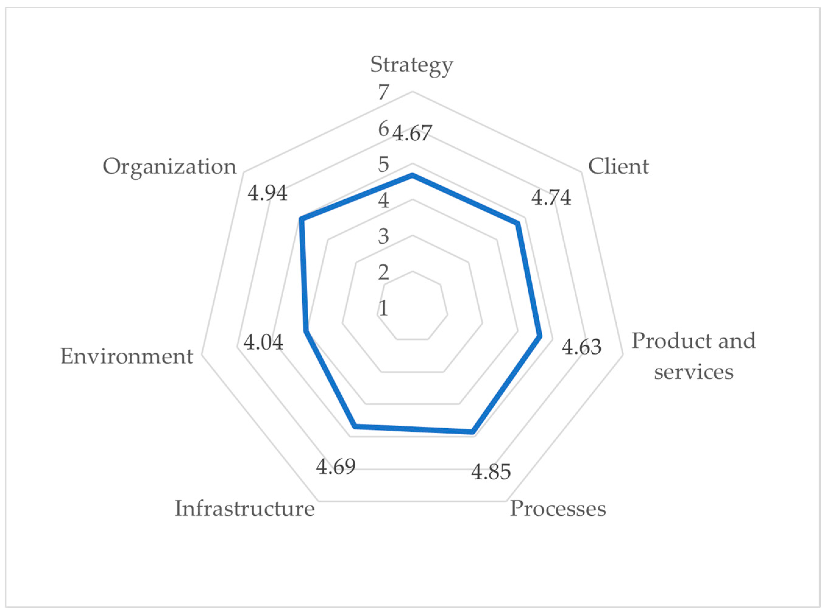 4.2. Digital Maturity Assessment in Manufacturing, Commercial, and Service Enterprises