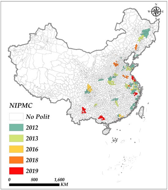 NIPMC designation is given to a city that, upon approval to become an NIPMC, and for the subsequent years, is assigned a value of 1 for this variable; all other years and cities not designated receive a value of 0. Given that county-level cities are also eligible to apply for pilot status, this study collects and analyzes data at the district and county levels to ensure comprehensive coverage of all pilot areas.