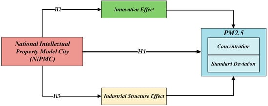 NIPMC plays multiple crucial roles in reducing both PM2.5 concentrations and their variability. Its main tasks include formulating and implementing urban IP strategies, strengthening management and services, improving policy frameworks, enhancing enforcement, and fostering the IP service industry. Together, these efforts contribute significantly to improving air quality and reducing environmental pollutants. NIPMC enhances urban innovation capacity by strengthening IP protection. Specifically, its reinforced measures incentivize enterprises and individuals to increase R&D investments in environmental and clean energy technologies, such as efficient filtration systems and low-emission fuels, which directly reduce PM2.5 emissions. Robust IP protection allows innovators to better safeguard their innovations and reduce the risk of technology leakage, thereby promoting the development and diffusion of environmental technologies [37]. Furthermore, NIPMC facilitates industrial optimization and upgrading. With IP policy support, traditional high-pollution industries have been upgraded, while low-pollution, high-value industries have expanded rapidly. Policy guidance, financial support, and tax incentives encourage businesses to adopt cleaner production technologies and equipment, thereby reducing pollutant emissions. High-energy, high-pollution enterprises have lowered PM2.5 emissions through technological upgrades and equipment modernization, while industries such as new energy and environmental protection have grown quickly with policy support, fundamentally reducing PM2.5 emissions.