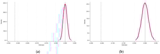 Figure 6 presents the results of the parallel trends test conducted in this study. Figure 6a displays the results for PM2.5 concentrations. It can be observed that before the implementation of the policy, the coefficients at different time points fluctuate around zero and do not reach a significant level. However, after the policy implementation, the coefficients change significantly, with the coefficients being significantly negative in most years, indicating a significant reduction in PM2.5 concentrations post-policy. Similarly, Figure 6b shows the results for the standard deviation of PM2.5. These results are akin to those for PM2.5 concentrations.