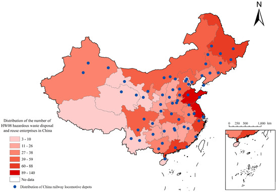 Distribution map of national railway locomotive depots and HW08 hazardous waste disposal and reuse enterprises.