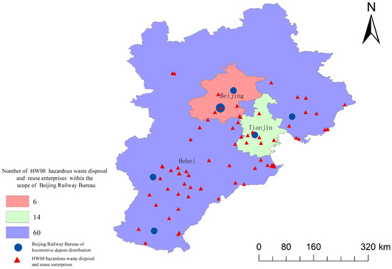Distribution of waste mineral oil disposal and reuse enterprises in the locomotive depots and jurisdictions under the Beijing Railway Bureau.