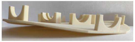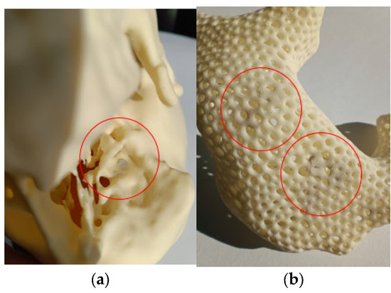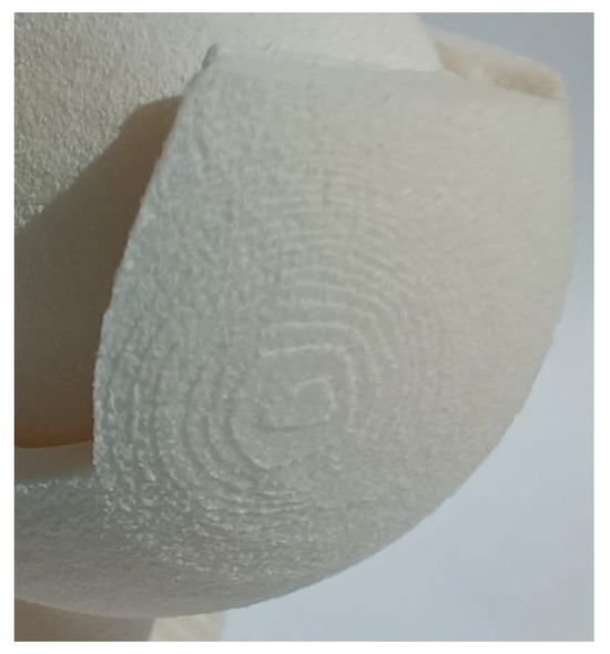 On curved surfaces, the stepping effect was also observed, accentuated by the high ratio of layer thickness to curvature radius—a typical manifestation of layer-by-layer fabrication that translates into roughness and increased post-processing effort (Figure 11).