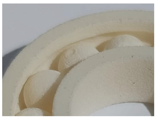 Additionally, a 6 mm sphere, part of a bearing, showed an incomplete zone at the top, resulting from process resolution limitations, which generated LOF and dimensional deviations that necessitate machining or rejection (Figure 6).