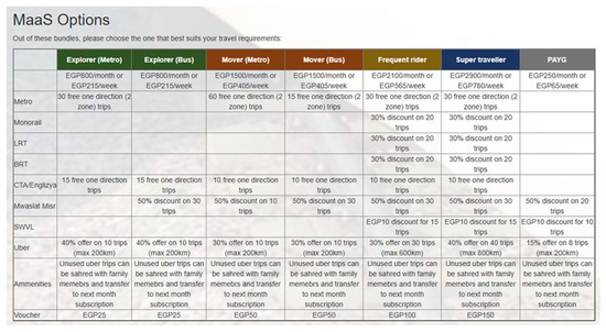 The bundles were designed to reflect Cairo’s travel needs, drawing from focus group inputs and thoughts on spending patterns and mode usage, with public transport as the core supplemented by shared services. Pricing strategies adapt lessons from the Sydney MaaS trial [40], offering monthly/weekly subscriptions and PAYG models to accommodate economic variability and promote adoption. For example, premium bundles like Super Traveler provide flexible credits and transferability, while Explorer options target budget-conscious users. Bundle design is inherently iterative, necessitating field trials to optimize parameters like personalization and elasticity in Cairo’s context.