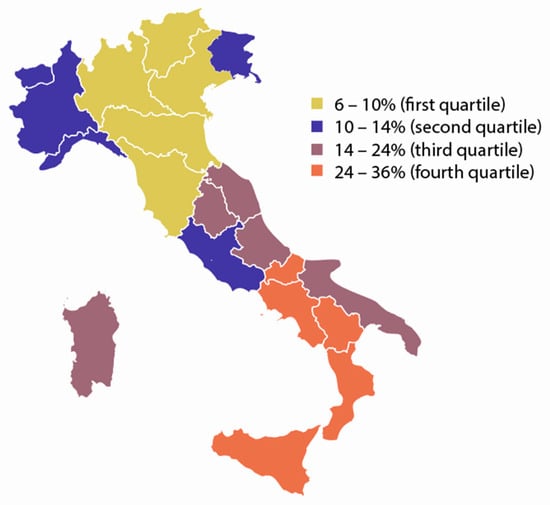 Frequency of energy poverty in Italian regions. Source: OIPE report 2020 [3].