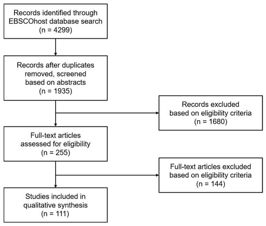 - Page, M.J.; McKenzie, J.E.; Bossuyt, P.M.; Boutron, I.; Hoffmann, T.C.; Mulrow, C.D.; Shamseer, L.; Tetzlaff, J.M.; Akl, E.A.; Brennan, S.E.; et al. The PRISMA 2020 statement: An updated guideline for reporting systematic reviews. BMJ 2021, 372, n71. [Google Scholar] [CrossRef] [PubMed]