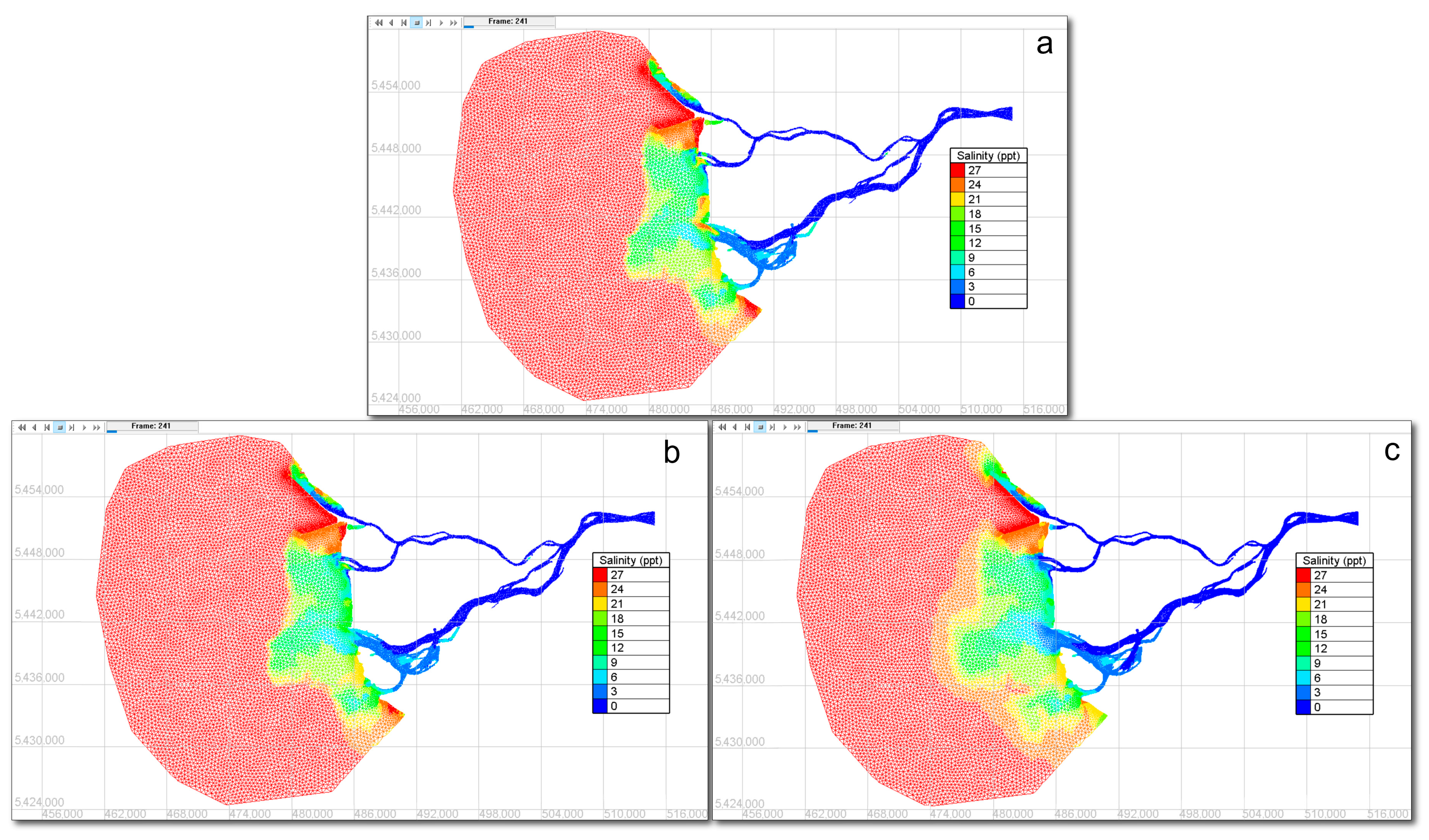 - Although the present simulations were carried out for a single hydrodynamic condition, the Fraser River is characterized by pronounced seasonal variation in flow magnitude. High flows during the freshet period may enhance downstream flushing of particles, whereas lower-flow periods may favor localized retention and accumulation. Future modeling work should incorporate seasonal variability to assess how hydrodynamic changes influence the stability and persistence of accumulation zones.