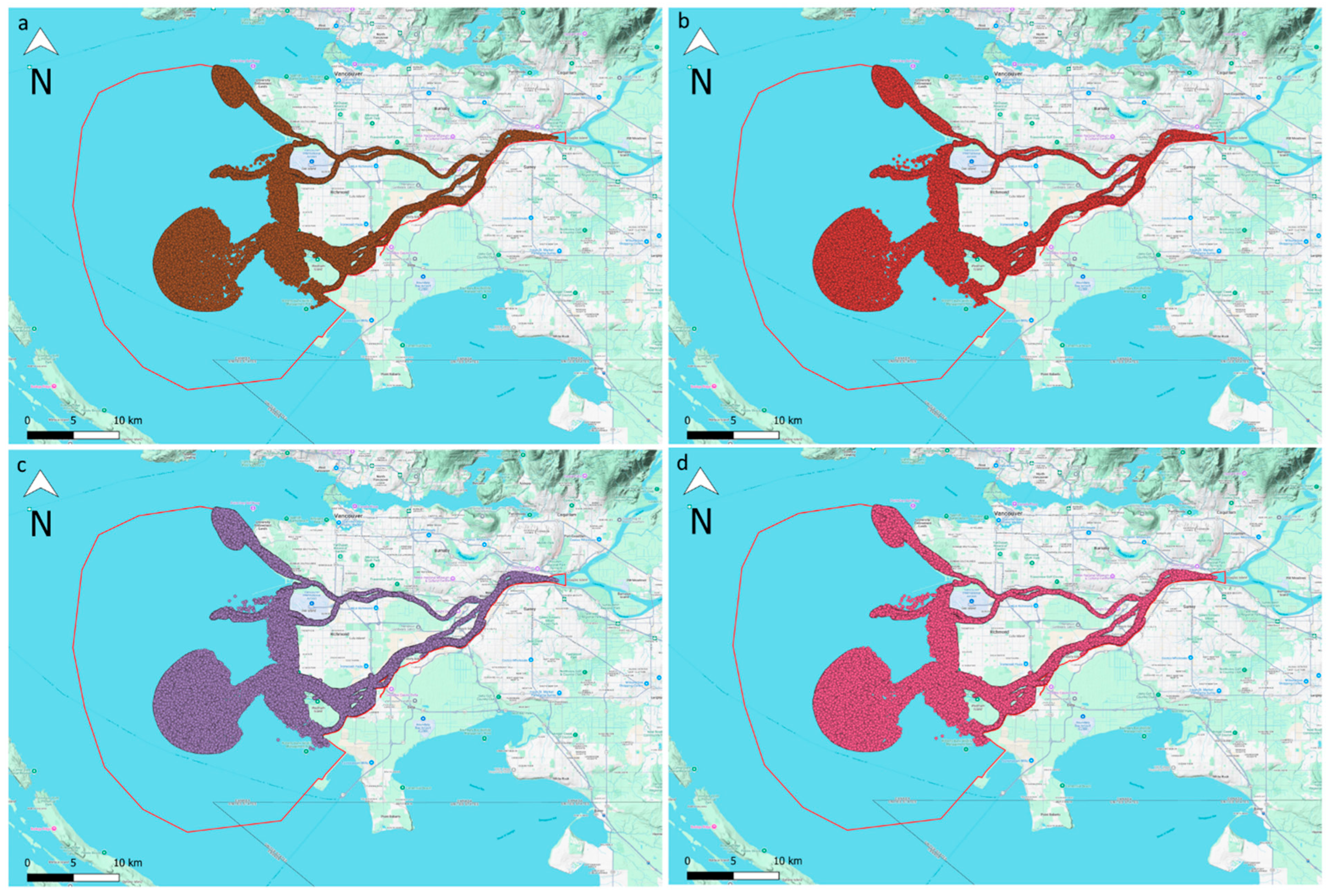 - Government of British Columbia Official Shapefiles and Bathymetry Data. 2023. Available online: https://www2.gov.bc.ca/gov/content/data/geographic-data-services (accessed on 29 November 2024).