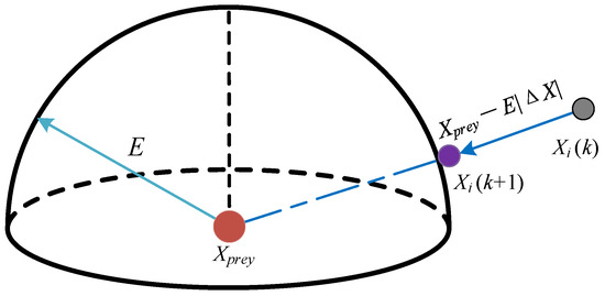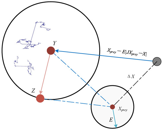 At the same time, when the prey performs more deceptive movements, the hawks may also perform irregular and rapid dives directly when approaching the prey. As shown in Figure 4, the rules can be expressed as follows: