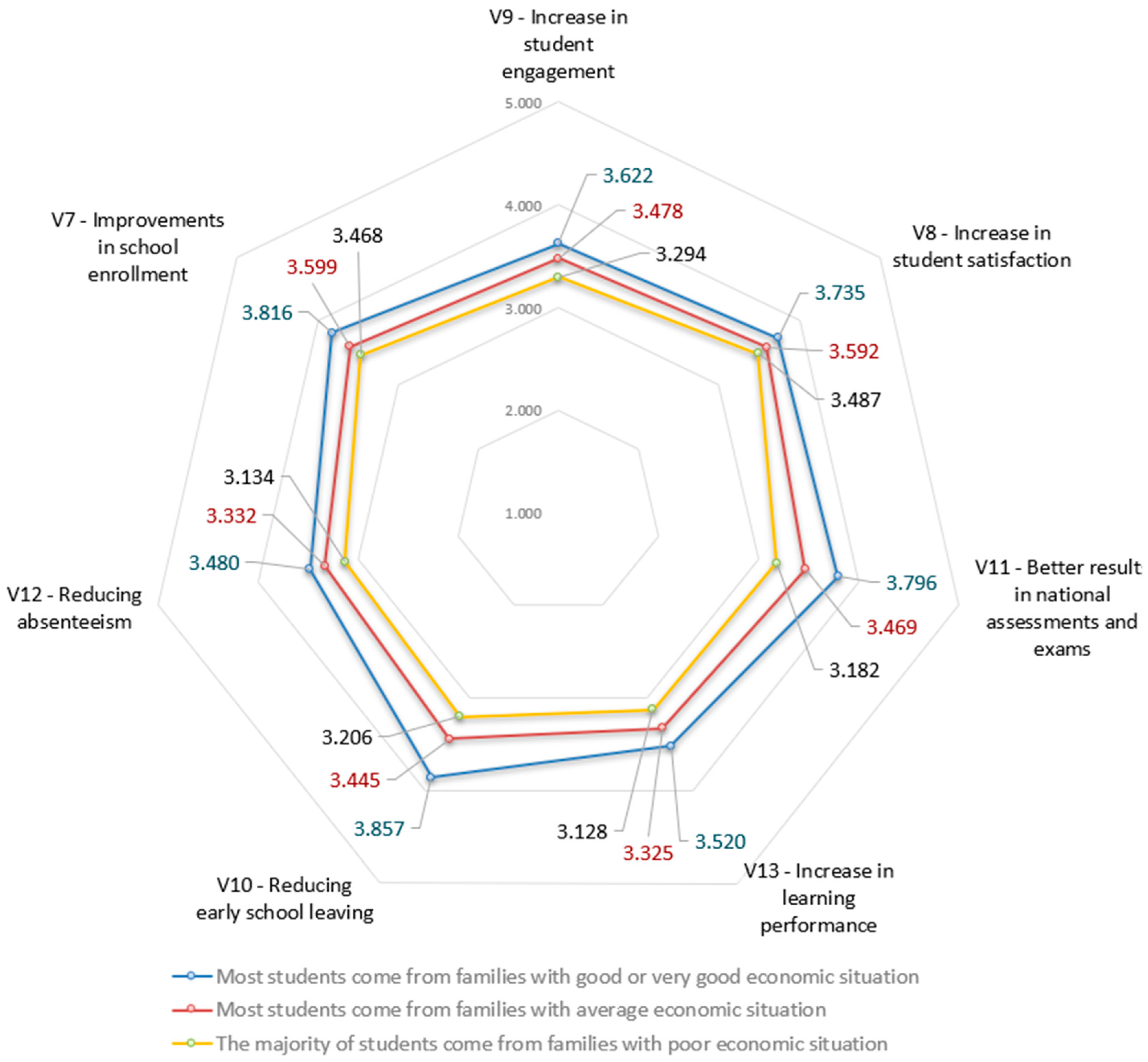 V9—Increase in student engagement | Most students come from families with good or very good economic situation | 98 | 3.622 | 1.06988 |
