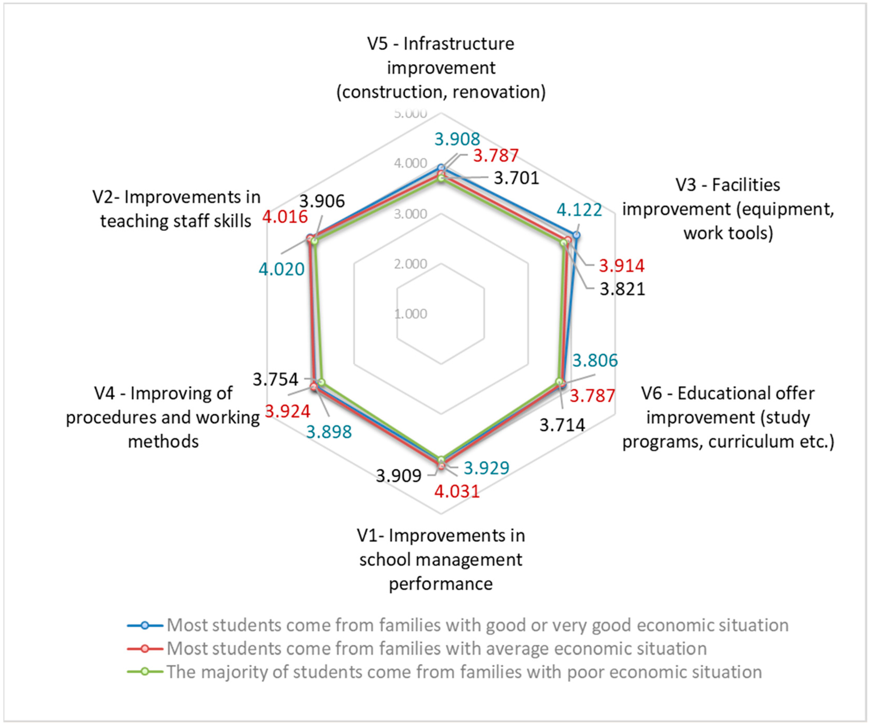 V5—Infrastructure improvement (construction, renovation) | Most students come from families with good or very good economic situation | 98 | 3.908 | 0.90914 |