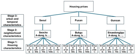 Furthermore, this study develops Stage 1 to Stage 3 hierarchical models for nationwide, Seoul, Busan, and Gunsan regions, to empirically demonstrate how housing, neighborhood, city, and temporal characteristics play a different role in APT prices across the three stages and regions.