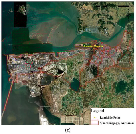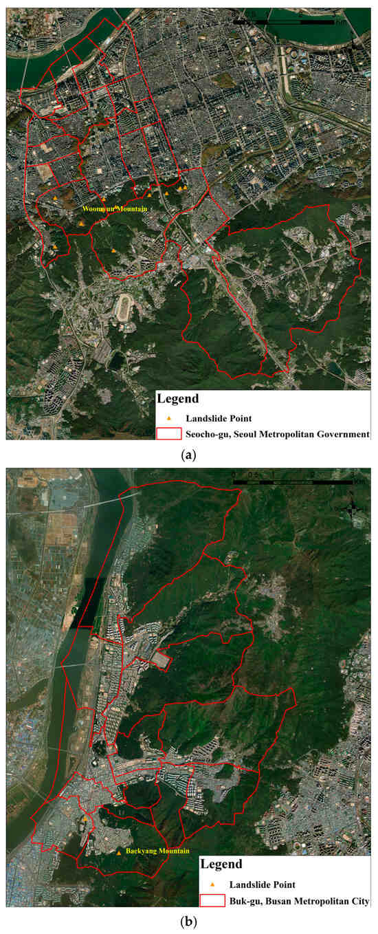 (a). Landslide occurrence point in Seoul. (b). Landslide occurrence point in Busan. (c). Landslide occurrence point in Gunsan.