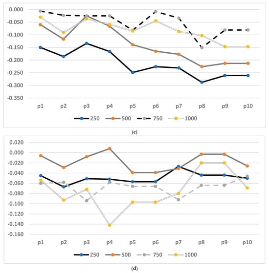 In contrast, Seoul generally shows a decrease in APT prices after the landslide. For example, pre-landslide APT prices (p3) reveal that the 250-m group trades at 10.6% lower, the 500-m group at 7.0% lower, the 750-m group at 6.9% lower, and the 1000-m group at 0.1% lower. After the landslide (p4), the 250-m group increases by 0.9%, while the 500-m group, 750-m group, and 1000-m group trade at 1.9%, 4.2%, and 3.5% lower, respectively (Table 5 and Table 6).