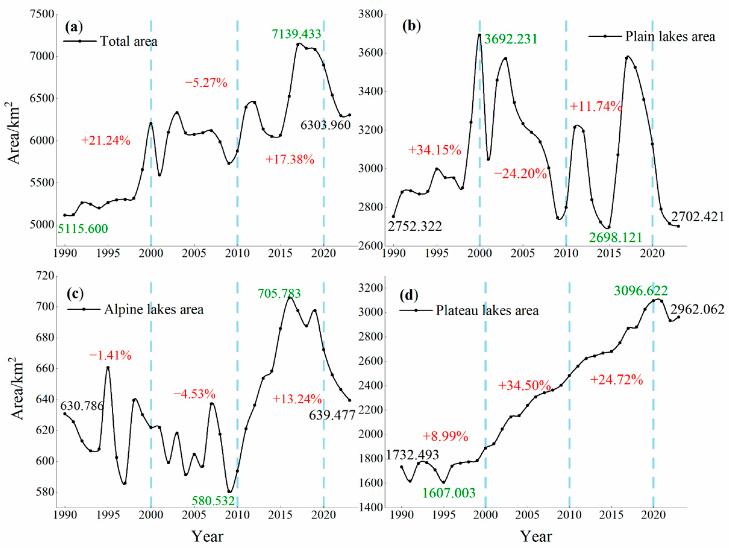 3.2.4. Interannual Variation in the Area of Plateau Lakes