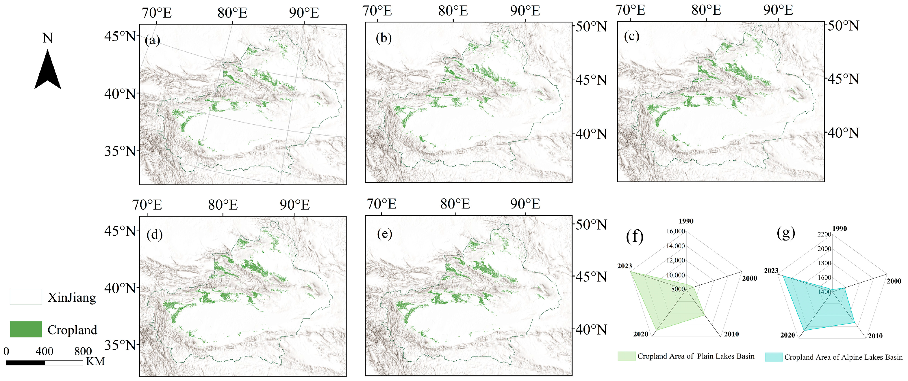 - Liao, N.; Wang, Y.; Xu, H.; Fam, Z.; Zhang, Z.; Yao, J.; Zhang, Q.; Huang, Y. Differences in and driving forces of cultivated land expansion in the Manas River Basin oasis, Xinjiang. Chin. J. Eco-Agric. 2021, 29, 1008–1017. (In Chinese) [Google Scholar] [CrossRef]