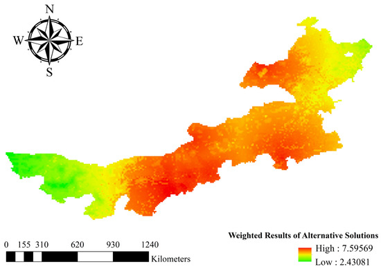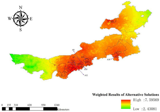 The effectiveness of this method is demonstrated through its application to a real-world case in Inner Mongolia. The method identifies Ejin Horo Banner as the most efficient site. This result is closely aligned with the region’s logistics demands and infrastructure readiness. Ejin Horo Banner features Ordos International Airport, multiple railway logistics parks, and national highways. This location provides it with significant logistics radiation advantages. Relying on abundant coal resources and a well-developed industrial chain, the region has generated an urgent demand for pallet pooling systems. Therefore, the construction of a pallet pooling service center has become imperative. It can not only efficiently support pallet circulation in the local area and surrounding cities (such as Baotou and Hohhot), improve logistics efficiency and resource utilization, but also provide strong support for reducing logistics costs and promoting green development in the region. This result indicates that the proposed method is not only theoretically robust but also practically reliable in guiding facility location decisions under conditions of spatial and economic complexity.