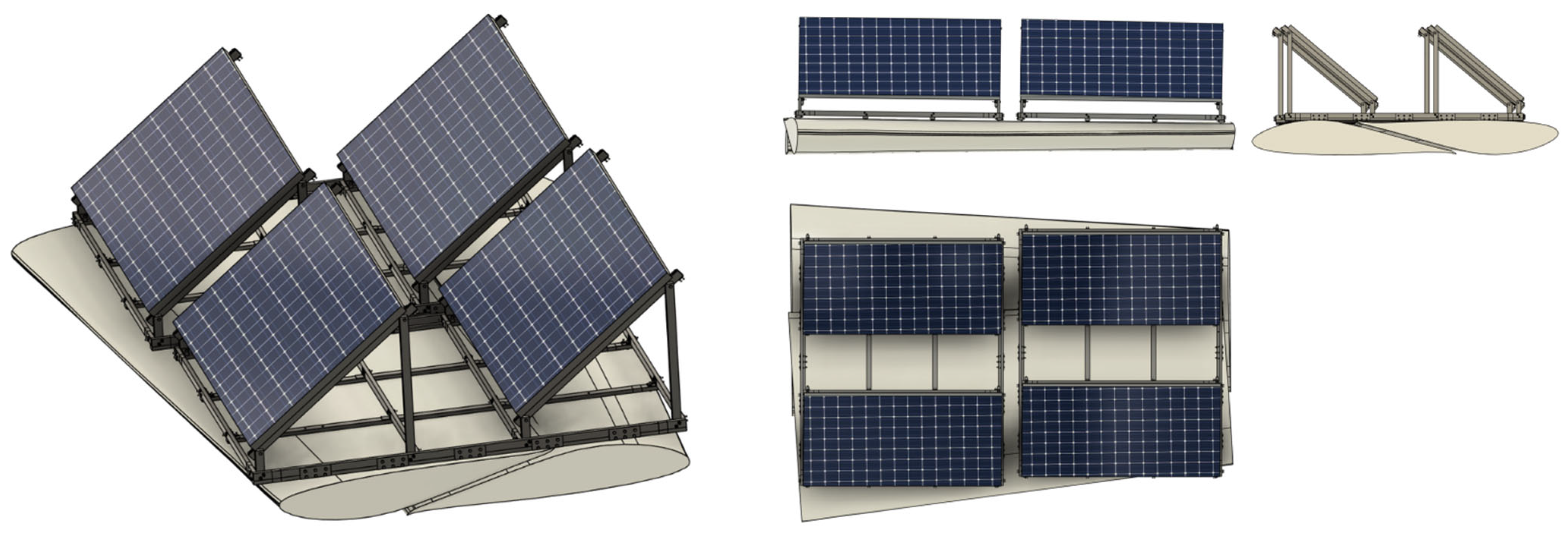 - If less lateral flexibility in the solar panel structure is desired, lowering the height could save material, increase more rigidity, and offer less contact area for additional wind loads in aquatic conditions.