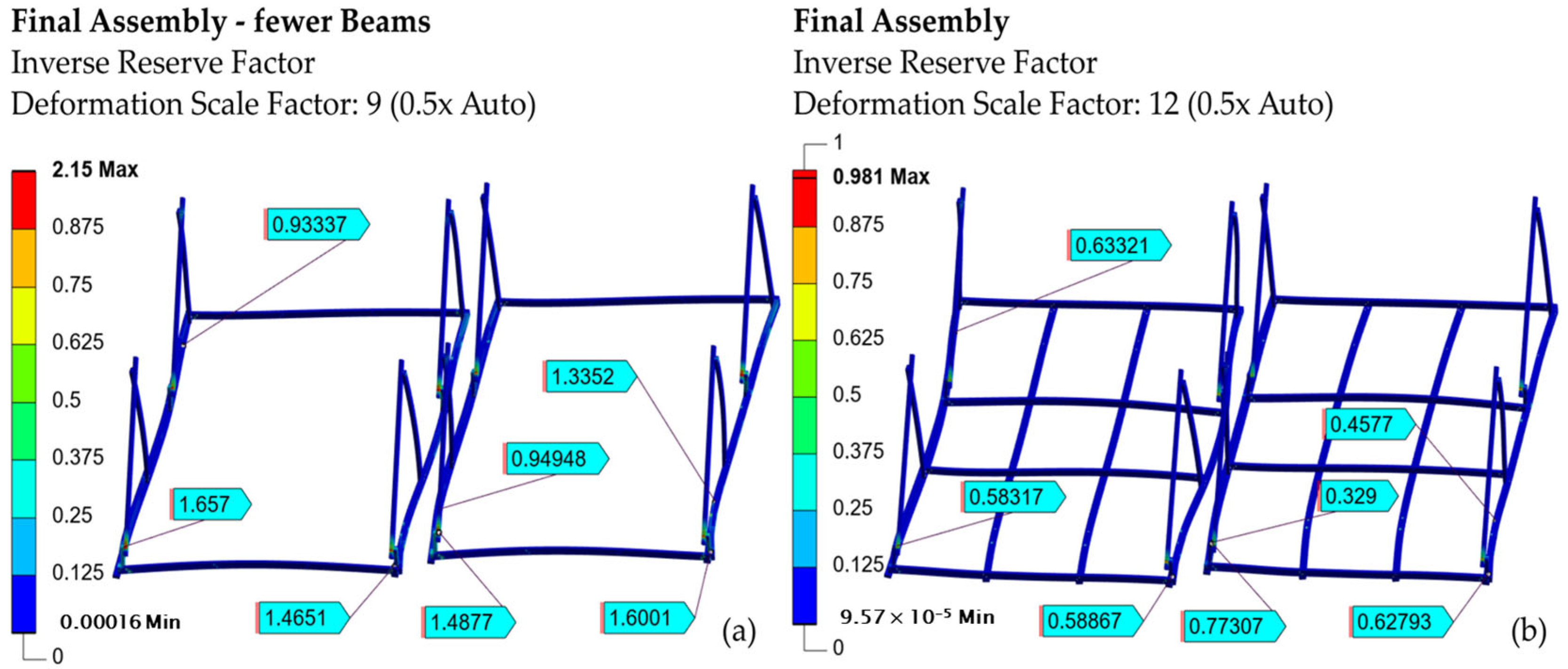 - A lower height combined with wider spar cap beams could also reduce bending stresses in the corner beams.
