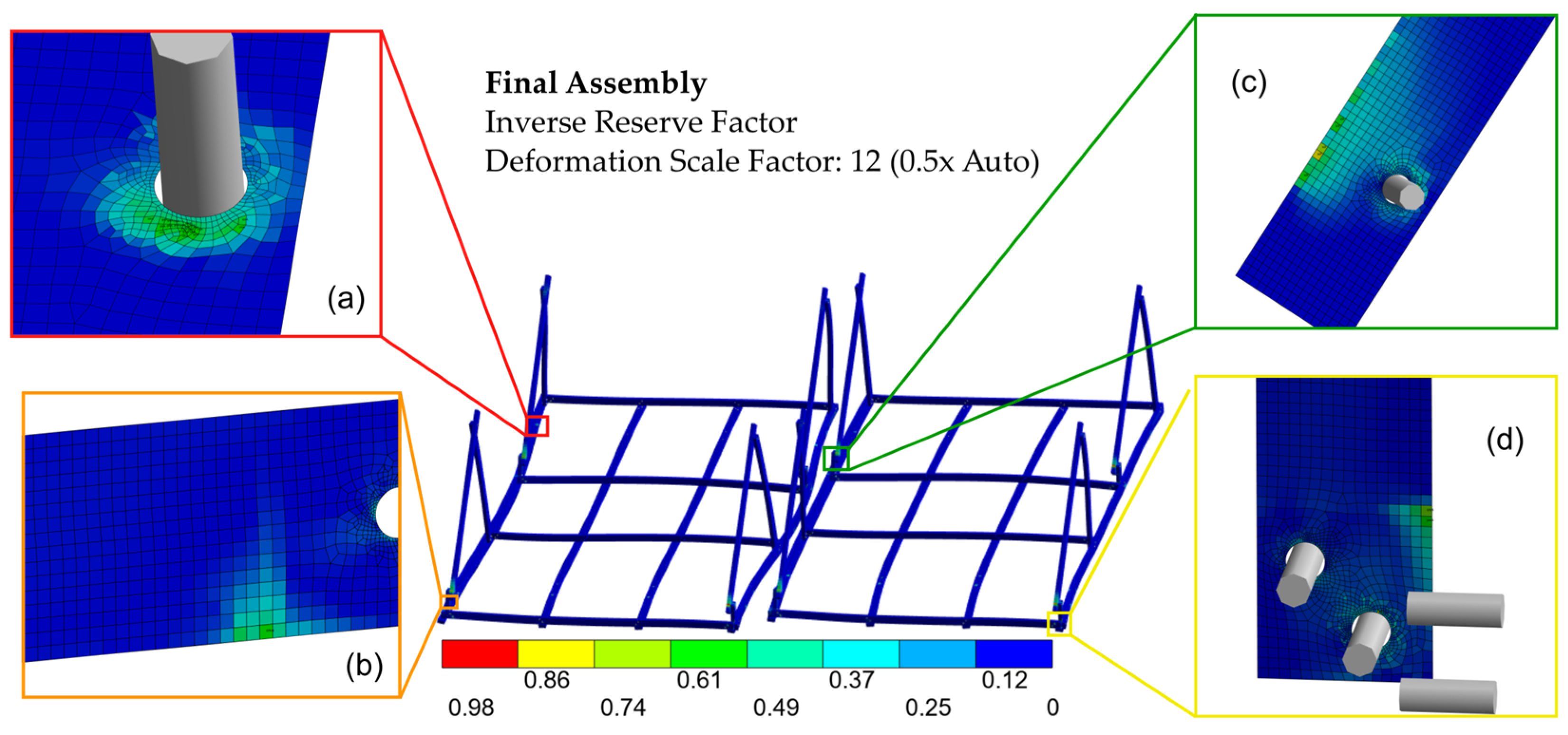 - To mitigate high IRF values near the connection bolts of the WTB segments, a higher number of bolts should be introduced to distribute the load more evenly. Additionally, the use of Class 12.9 Hex Bolts is recommended, as internal stresses in the bolts can be high (see Figure S3)).