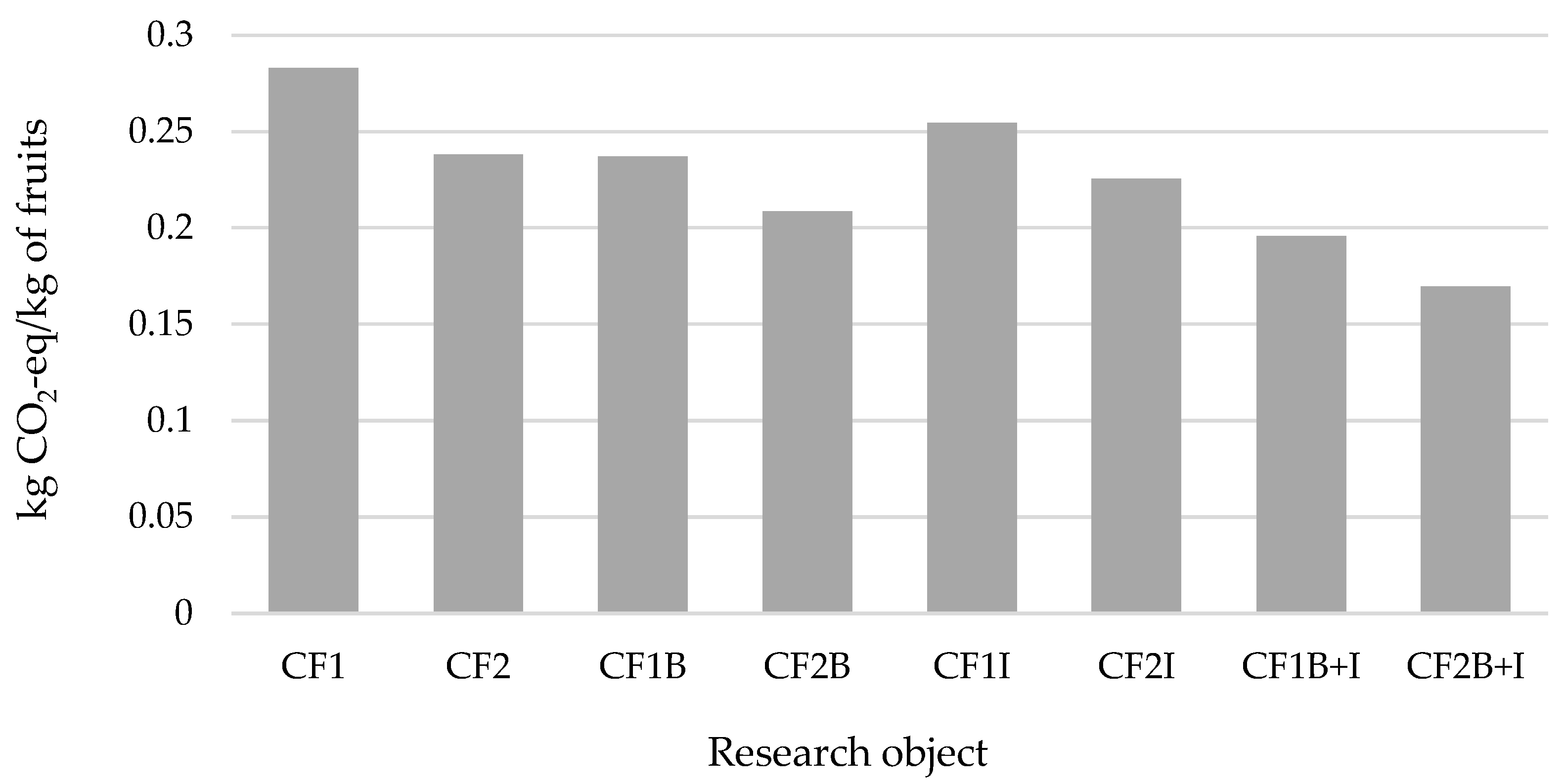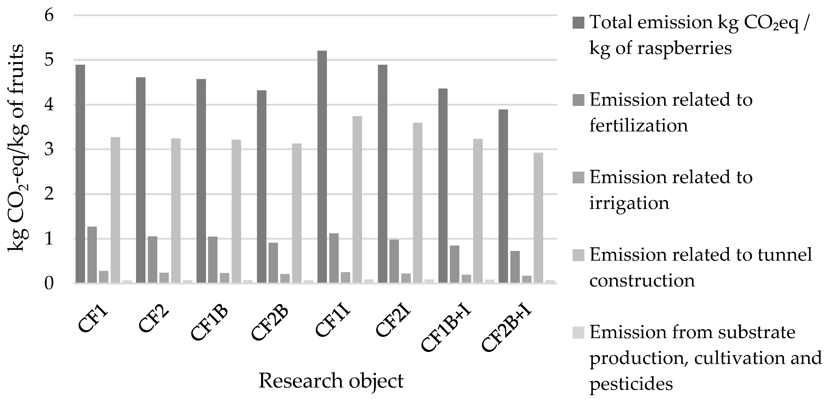 3.1. Analysis of GHG Emissions Related to Raspberry Production