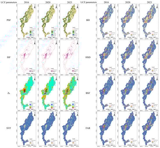 Spatio-temporal distribution of LCZ parameters from 2016 to 2023.