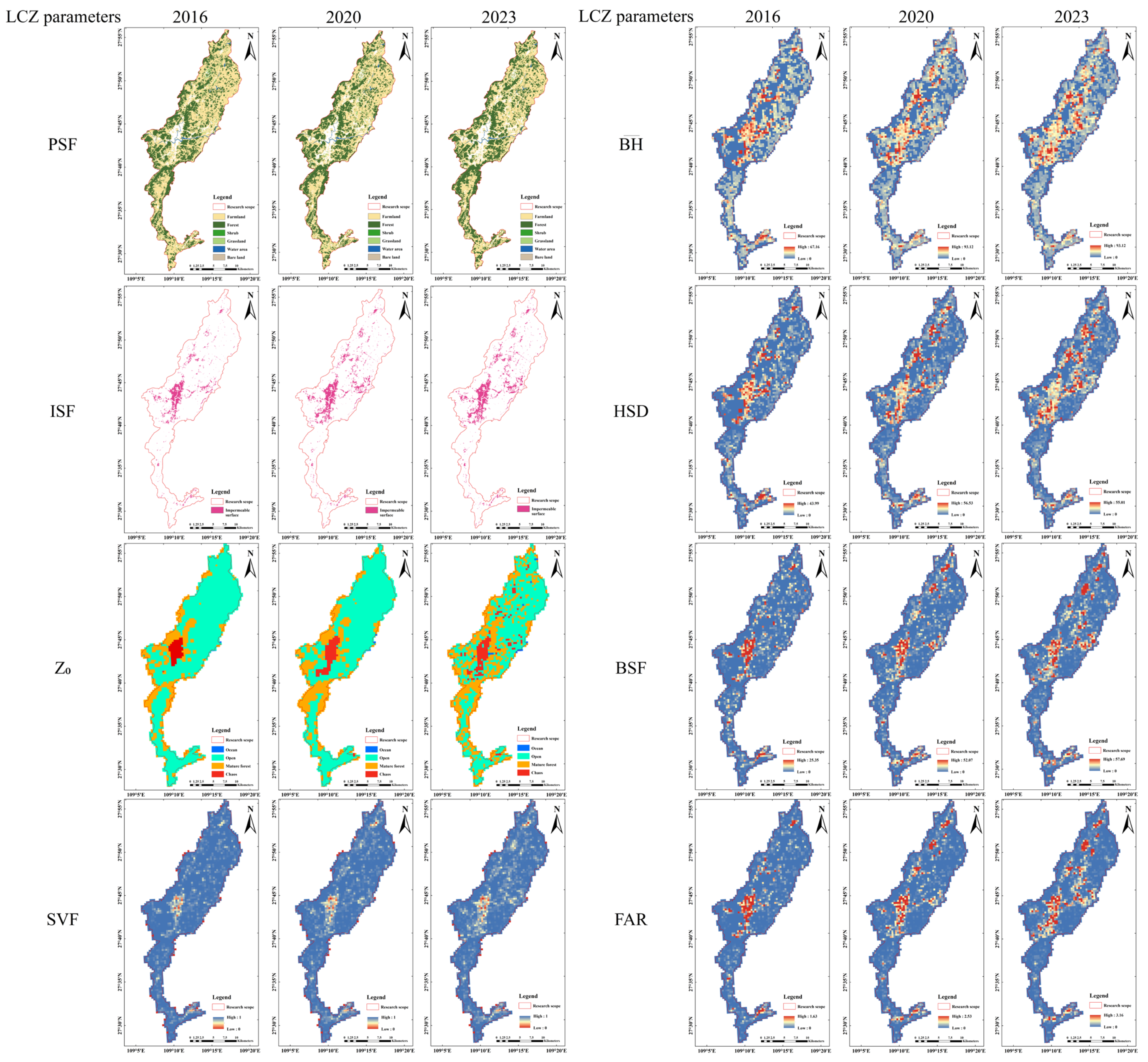 3.2.1. Analysis of Quantitative Changes in Local Climate Zone (LCZ) Parameters