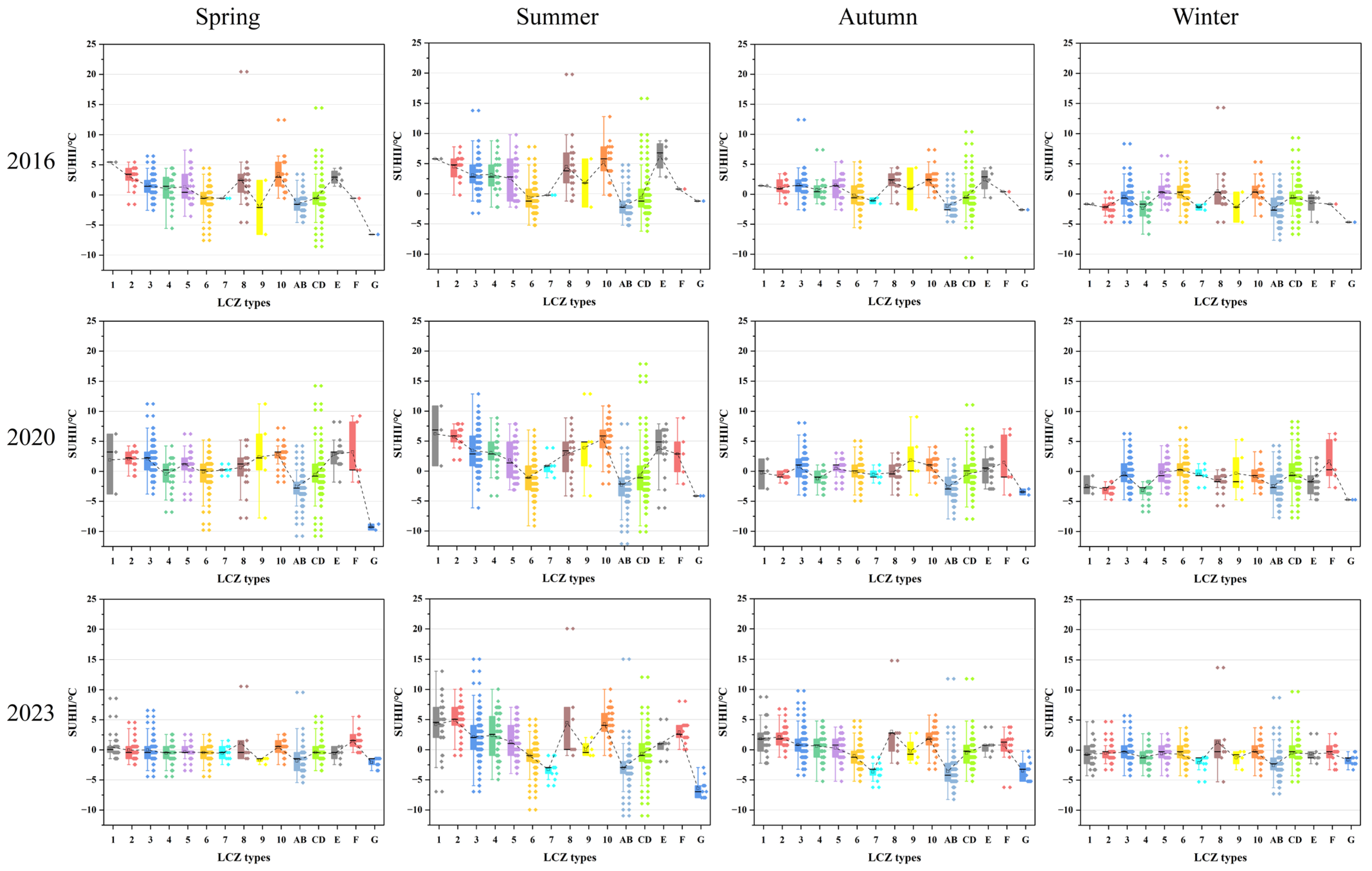 Table 6. Changes in average heat island intensity of local climate zone types from 2016 to 2023 (°C).