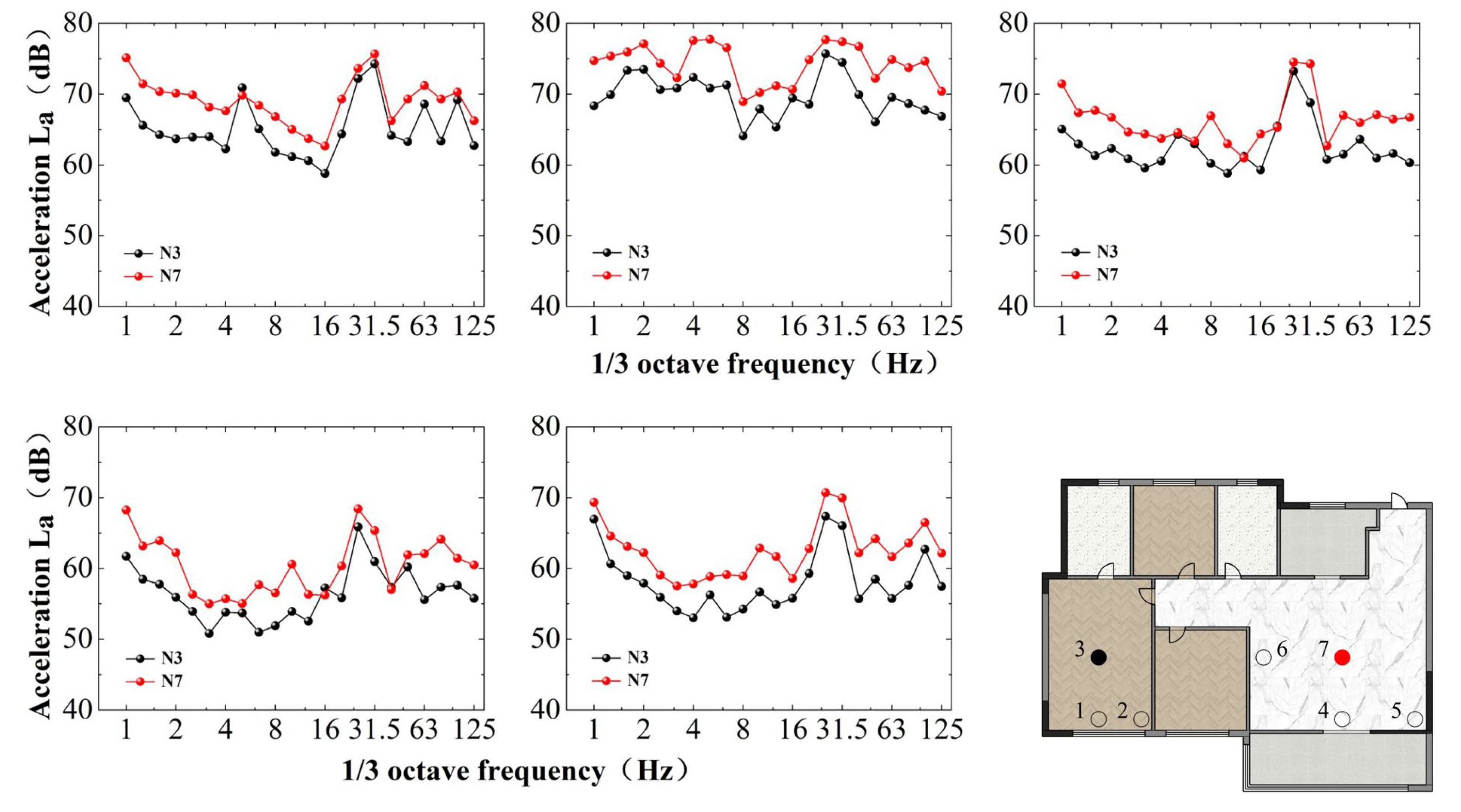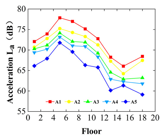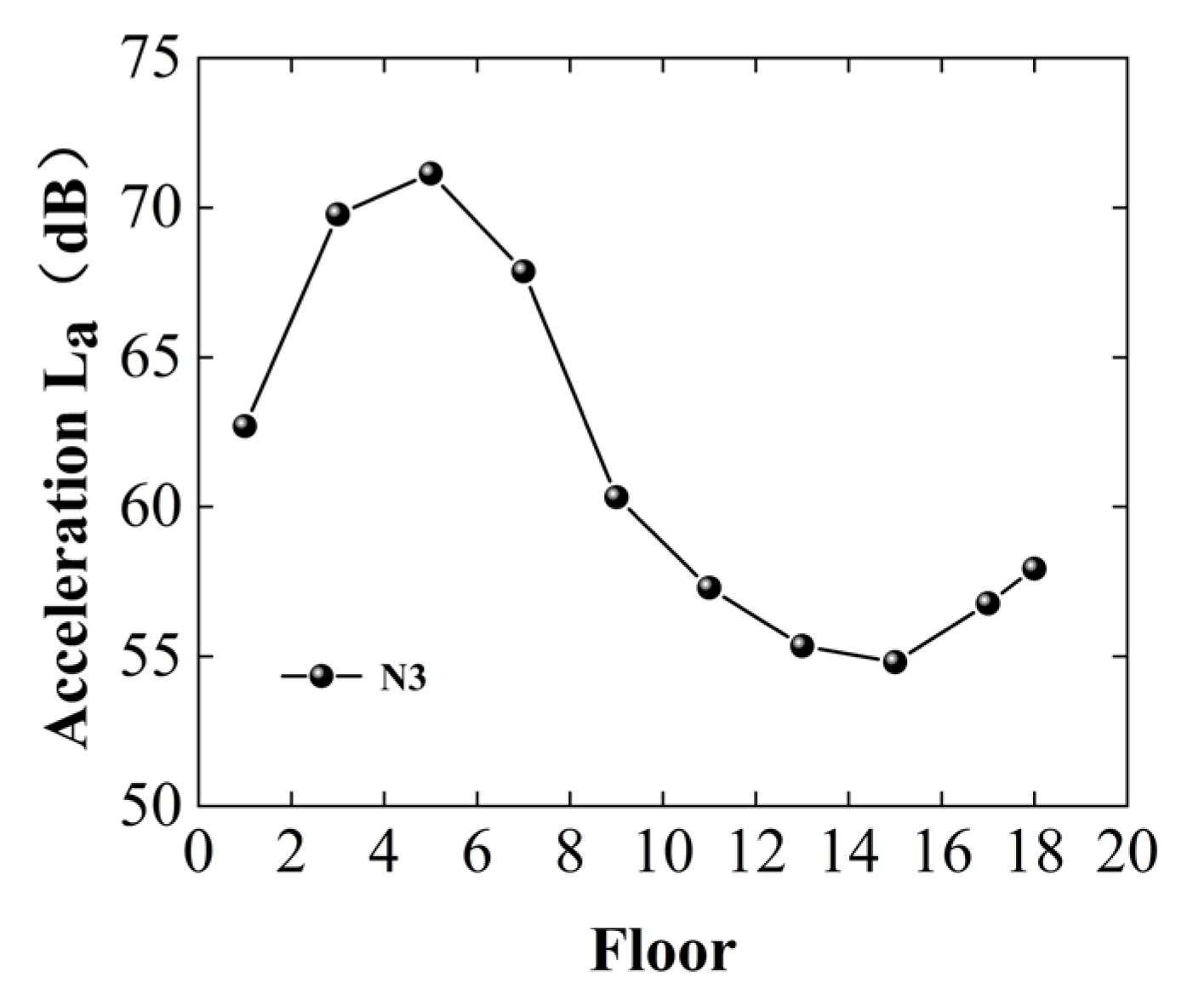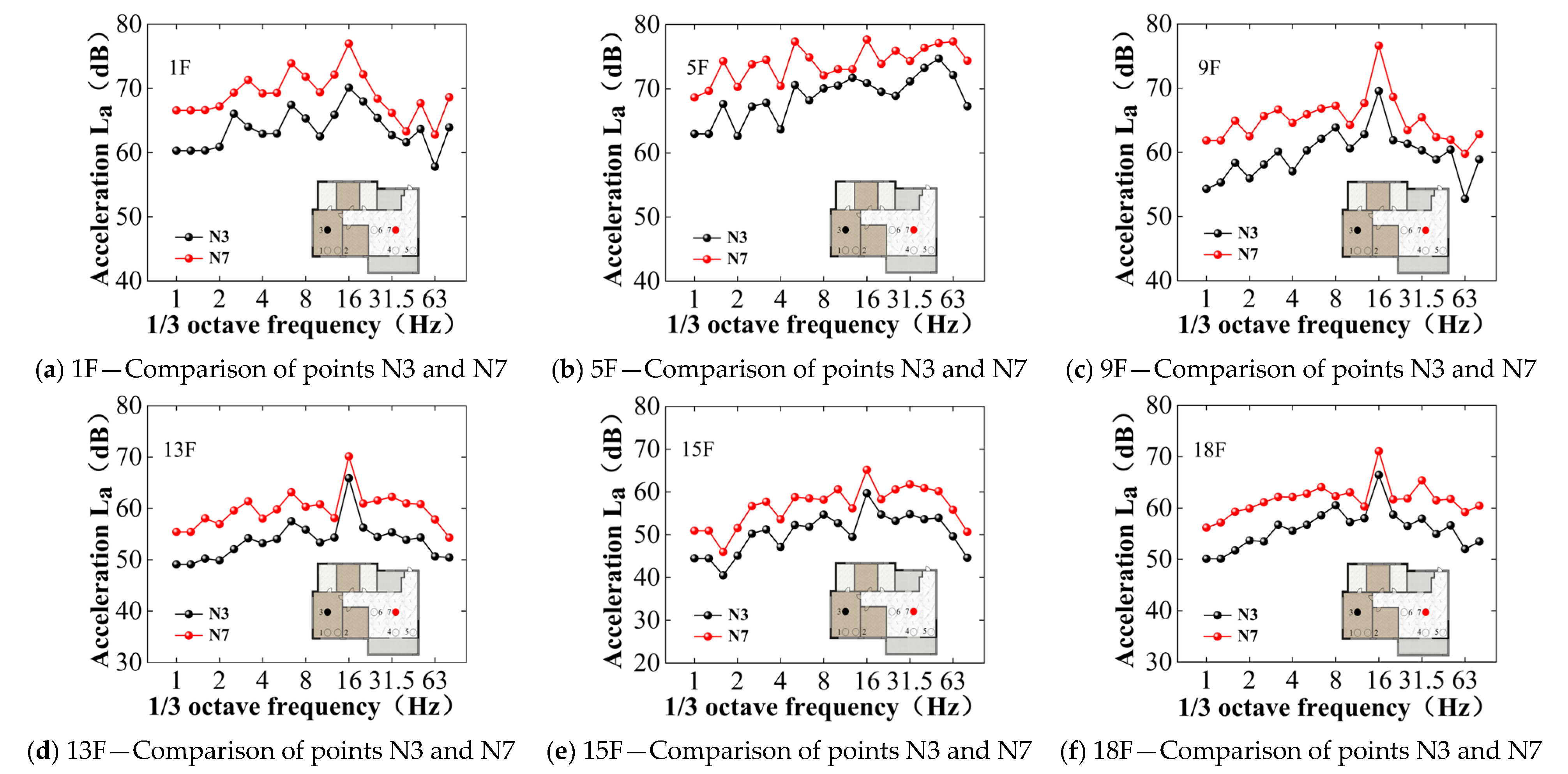 4.4.1. Vertical Vibration Level Results for Different Heights